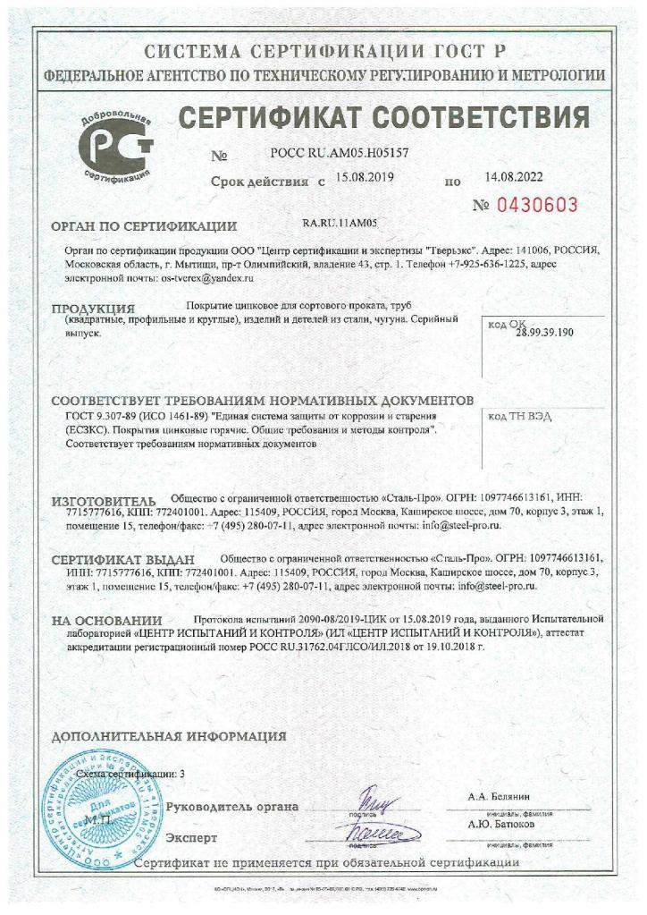 По желанию заказчика толщина защитного слоя может быть изменена, без нарушения технологии цинкования.